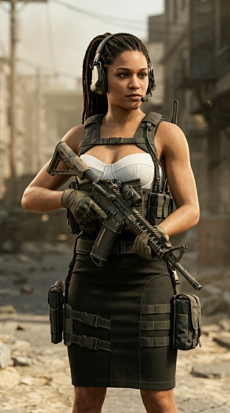 Transform the provided reference photo into a 3D Call of Duty: Warzone–style skin while maintaining all the unique facial features, expression, and body proportions from the reference.The clothing should be preserved in its original form, whether it's a bikini, casual wear, or any other type of outfit — but the outfit must be seamlessly integrated into a realistic, tactical Warzone skin.The outfit must include details like tactical accessories, textures, and layers (e.g., fabric, stitching, and realistic materials), while ensuring the essence of the original clothing is clearly visible. For example, a bikini would have added texture and shading for realism, while a jacket would have military-style detailing like pockets and reinforced sections, if applicable.Style the character as an FPS operator in next-gen 3D graphics, using high-quality textures, lighting, and realistic shaders for skin, clothing, and accessories.Camera: medium or full-body shot, emphasizing the 3D realism of the character.Lighting: cinematic, highlighting the character’s features and outfit in a Warzone-style atmosphere.Mood: elite operator, realistic, immersive.Style: AAA videogame character, ultra-realistic 3D, with tactical details.Quality: Ultra HD, 4K–8K, sharp focus, game-ready render.